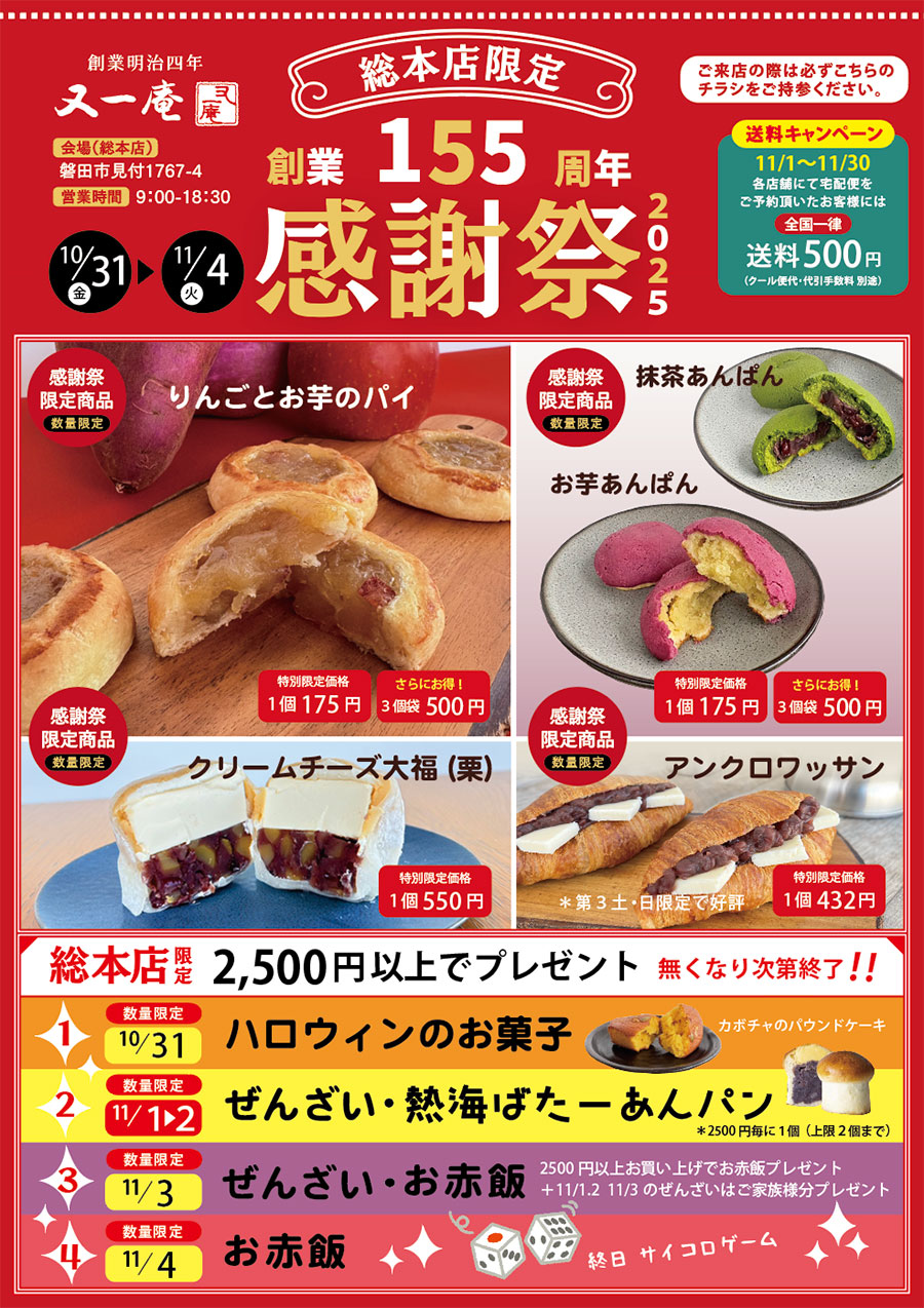 10月31日(金)~11月4日(火)の期間、総本店限定 155周年 感謝祭を開催します。