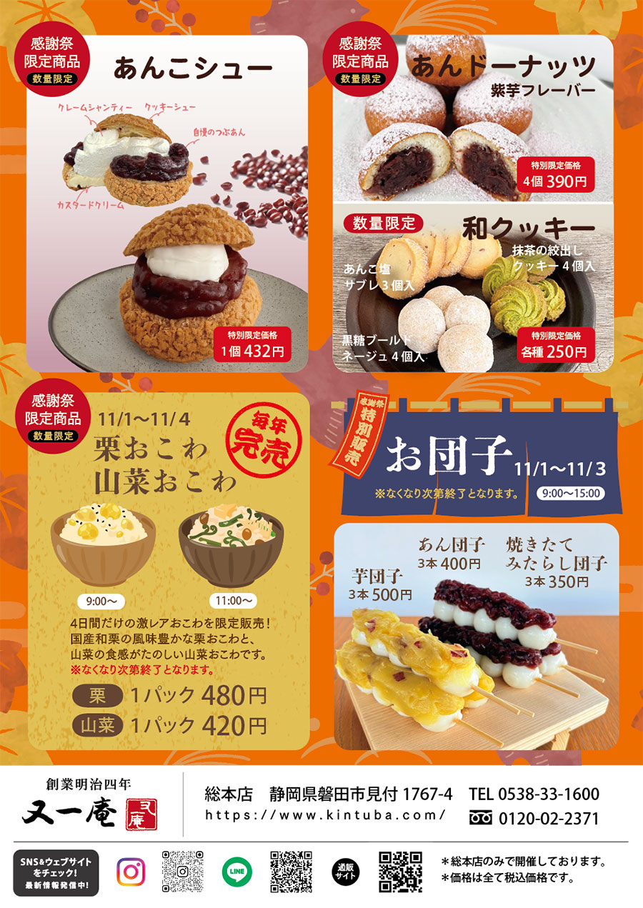 創業149年の老舗きんつば店リニューアル1周年。静岡県磐田市の「又一庵 総本店」で10/31~11/3に周年記念イベントを開催!新スイーツも登場!